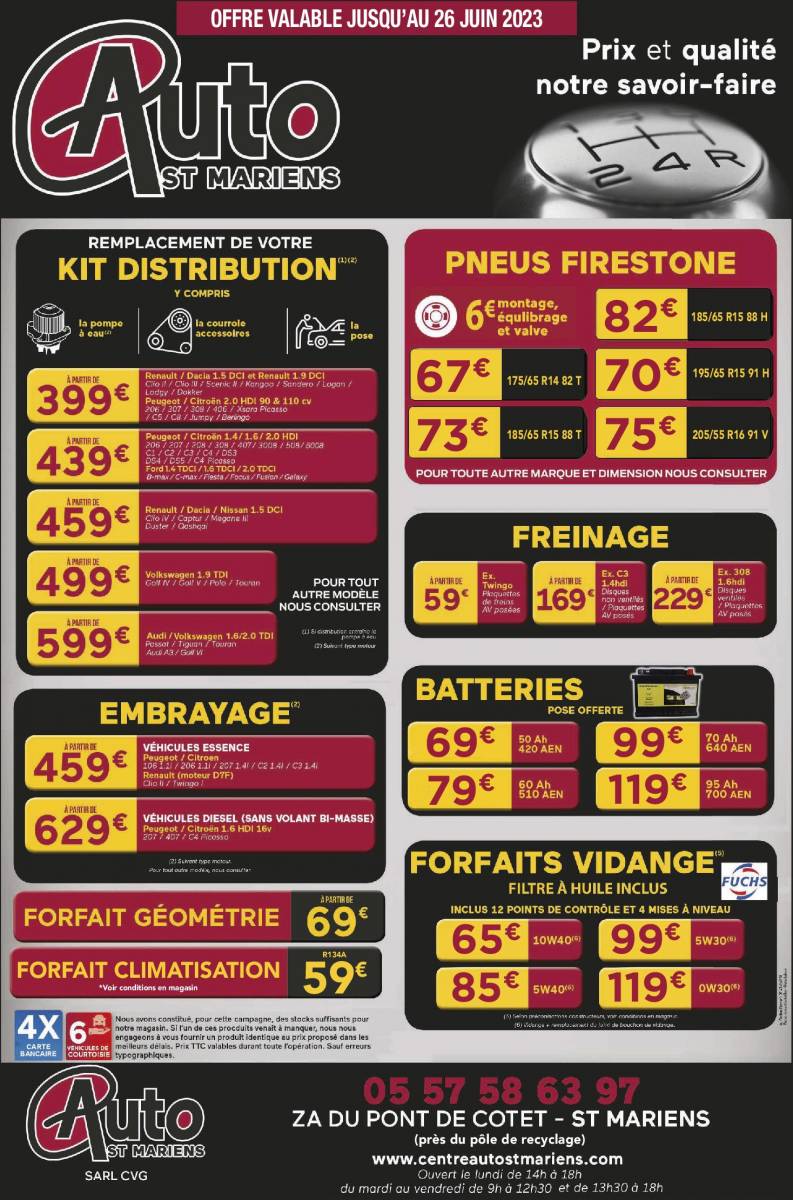 05 57 58 63 97 ou par mail : contact@centreautostmariens.com